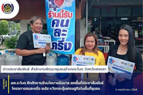 พช.ระโนด คึกคักขานรับนโยบายรัฐบาล ลงพื้นที่ประชาสัมพันธ์ โครงการคนละครึ่ง พลัส หวังกระตุ้นเศรษฐกิจในพื้นที่ชุมชน