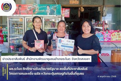 พช.ระโนด คึกคักขานรับนโยบายรัฐบาล ลงพื้นที่ประชาสัมพันธ์ โครงการคนละครึ่ง พลัส หวังกระตุ้นเศรษฐกิจในพื้นที่ชุมชน