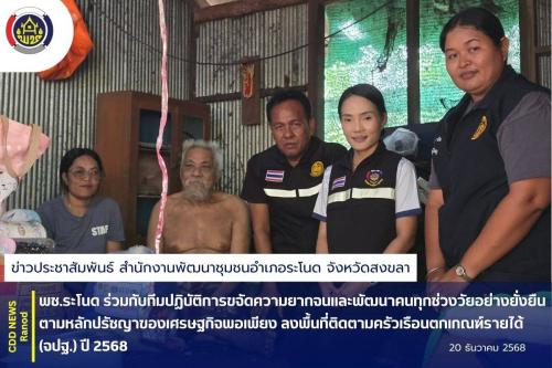 พช.ระโนด ร่วมกับทีมปฏิบัติการขจัดความยากจนและพัฒนาคนทุกช่วงวัยอย่างยั่งยืน ตามหลักปรัชญาของเศรษฐกิจพอเพียง ลงพื้นที่ติดตามครัวเรือนตกเกณฑ์รายได้ (จปฐ.) ปี 2568