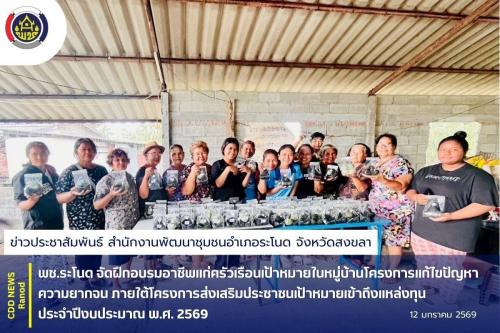 พช.ระโนด จัดฝึกอบรมอาชีพแก่ครัวเรือนเป้าหมายในหมู่บ้านโครงการแก้ไขปัญหาความยากจน ภายใต้โครงการส่งเสริมประชาชนเป้าหมายเข้าถึงแหล่งทุน ประจำปีงบประมาณ พ.ศ. 2569